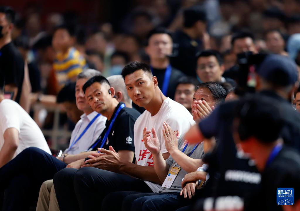5月19日,中国男篮前队员易建联来到现场观赛。新华社记者 雒圆 摄