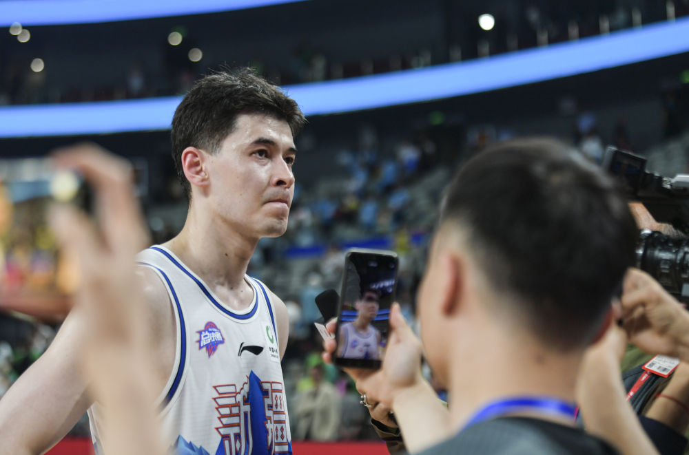 5月20日,新疆队阿不都沙拉木在比赛后接受媒体采访。新华社记者 王菲 摄