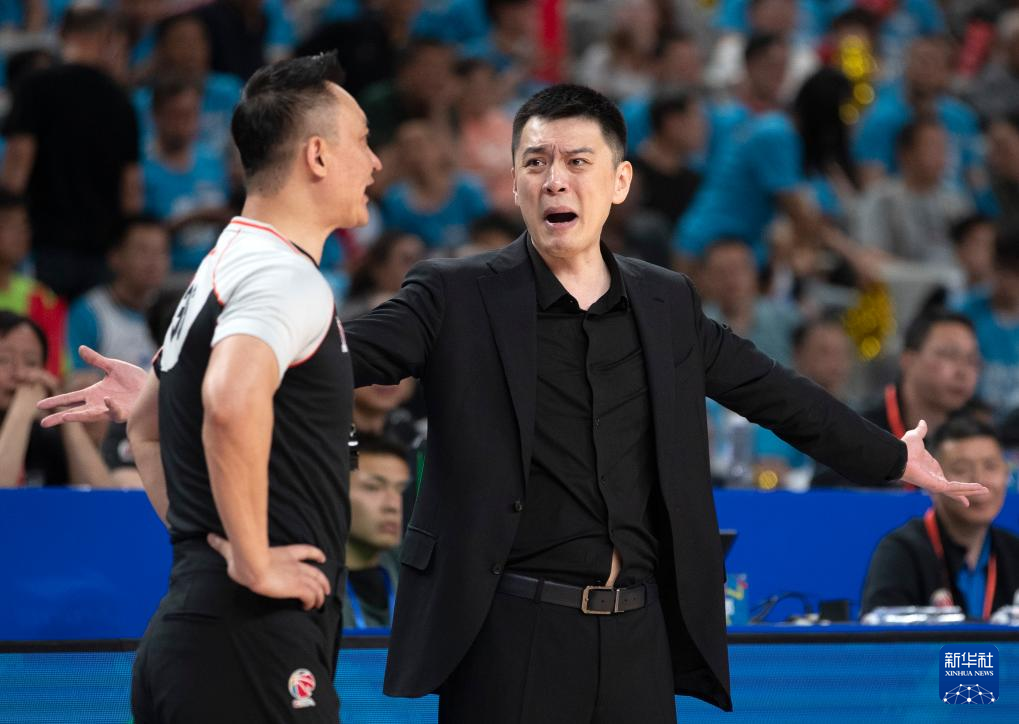 5月20日,新疆伊力特队主教练邱彪在比赛中指挥。新华社记者 雒圆 摄