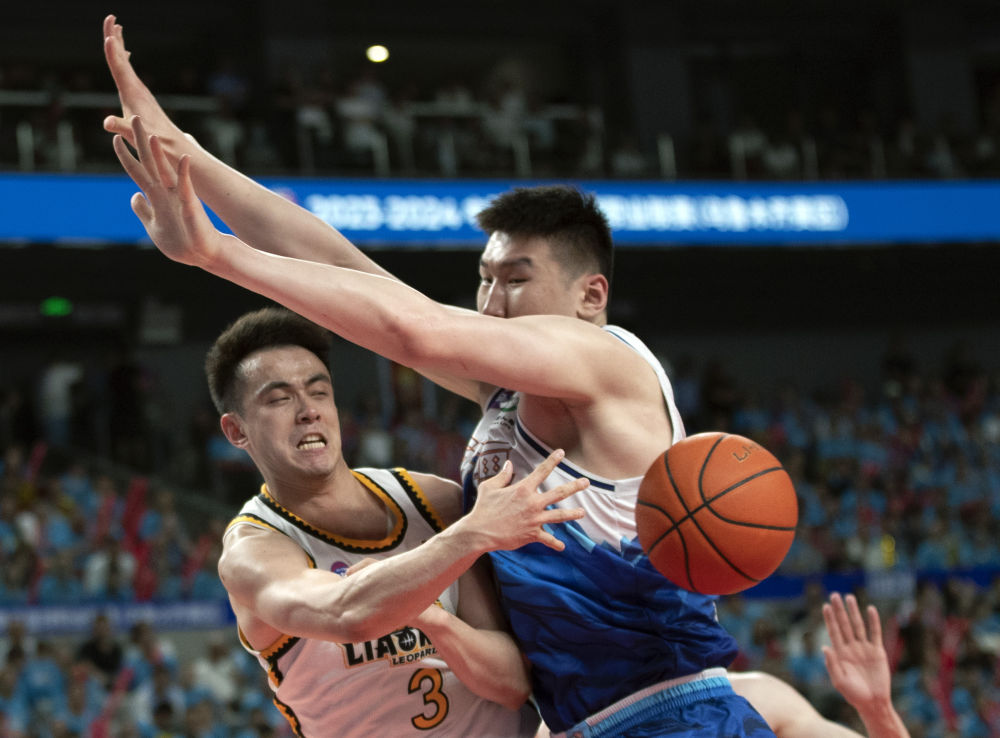 5月20日,辽宁队赵继伟(左)在比赛中传球。新华社记者 雒圆 摄