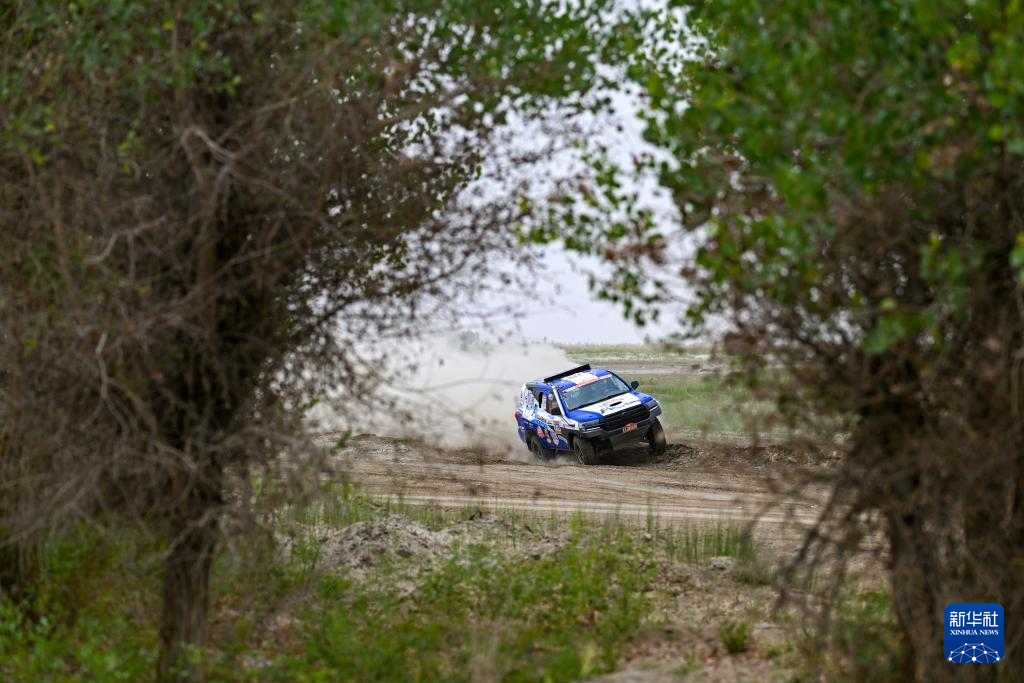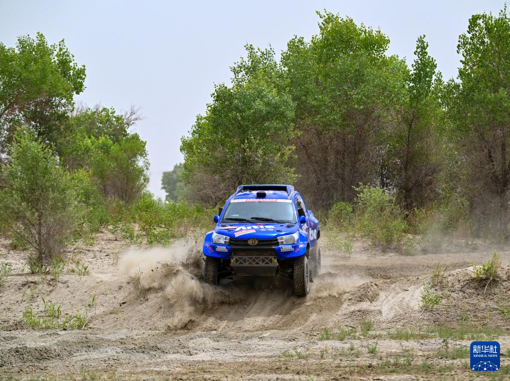 5月29日,北京市大兴区巨匠应急拉力车队车手阎乐、领航员刘金涛驾驶赛车在比赛中。新华社记者 陈朔 摄