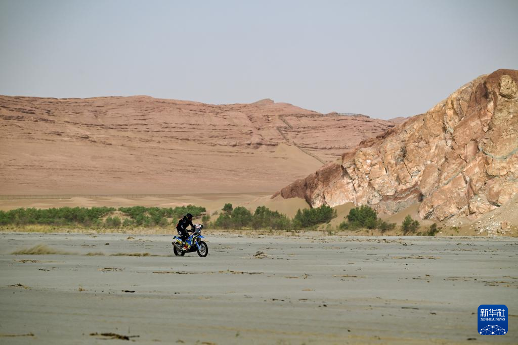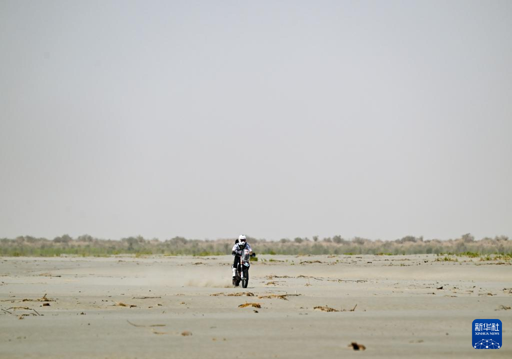 5月29日,古岳拉力车队车手中国车手阿尤布·马伟笑在比赛中。新华社记者 陈朔 摄