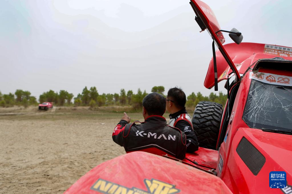 5月29日,兵团第一师阿拉尔塔漠车队车手冉勇、领航员刘刃在比赛中。新华社记者 陈朔 摄