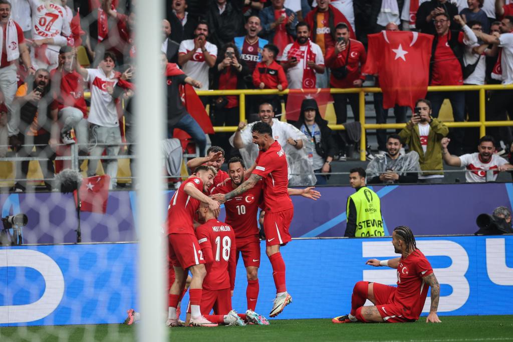 易边再战,第65分钟,土耳其小将居莱尔禁区外一脚“神仙球”,帮助土耳其队再度领先。19岁114天的居莱尔成为欧锦赛首秀破门的最年轻球员,打破了C罗2004年创造的纪录(19岁128天)。补时第七分钟,格鲁吉亚门将到前场争抢头球,土耳其前锋阿克蒂尔科奥卢反击打空门得手,为土耳其队3:1锁定胜局。