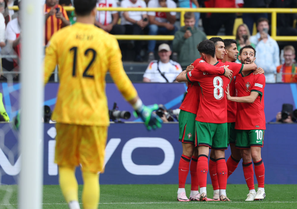 6月22日,葡萄牙队球员庆祝进球。新华社记者 潘昱龙 摄