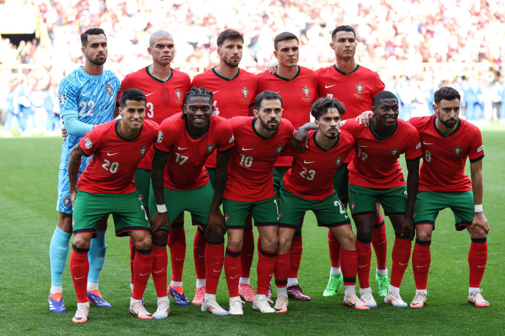 6月22日,葡萄牙队首发球员赛前合影。新华社记者 潘昱龙 摄