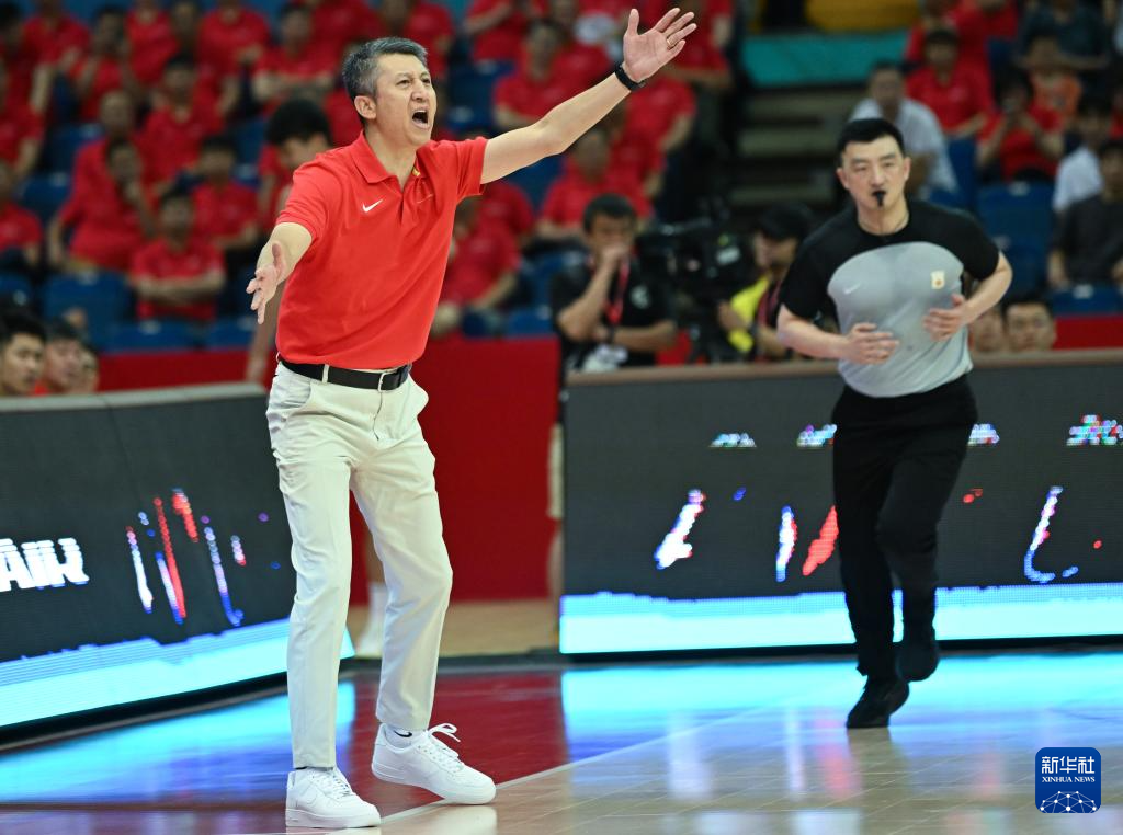 6月26日,中国男篮代理主教练郭士强在场边指挥。新华社发(王须中摄)