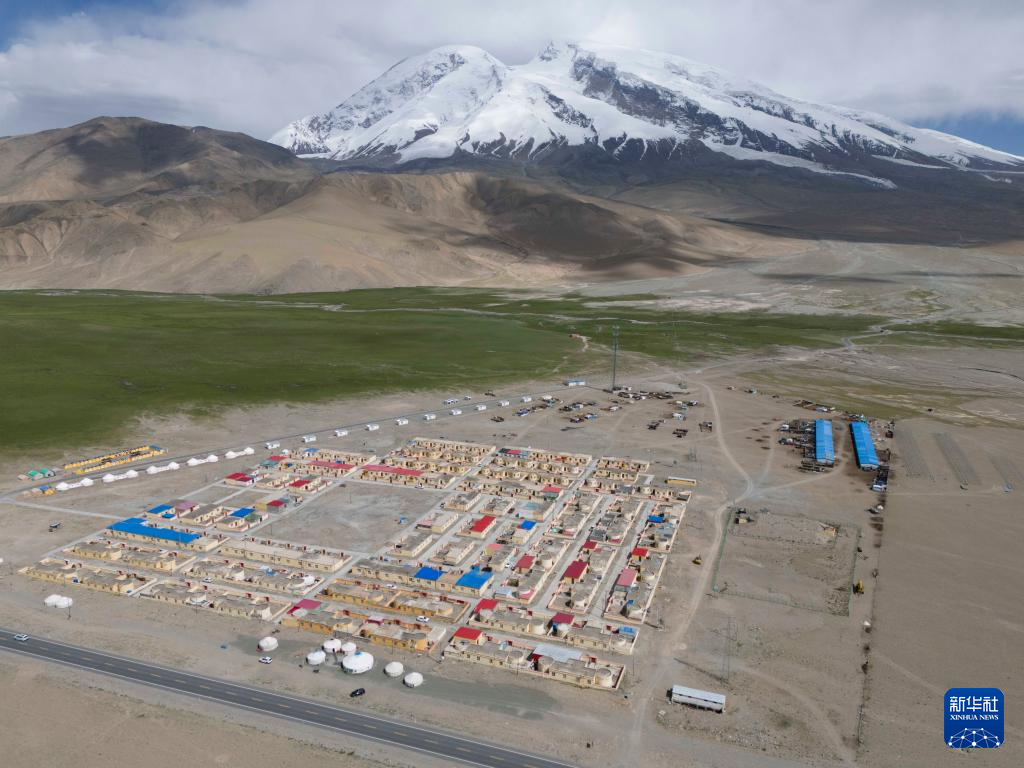 塔西巴伊家住新疆慕士塔格峰脚下的阿克陶县布伦口乡苏巴什村三小队(7月2日摄,无人机照片)。新华社记者 胡虎虎 摄