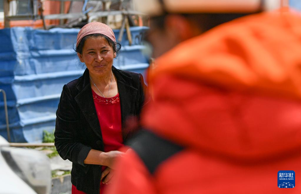 7月5日,塔西巴伊下山后回到家,等候在门口的母亲露出笑容。新华社记者 胡虎虎 摄