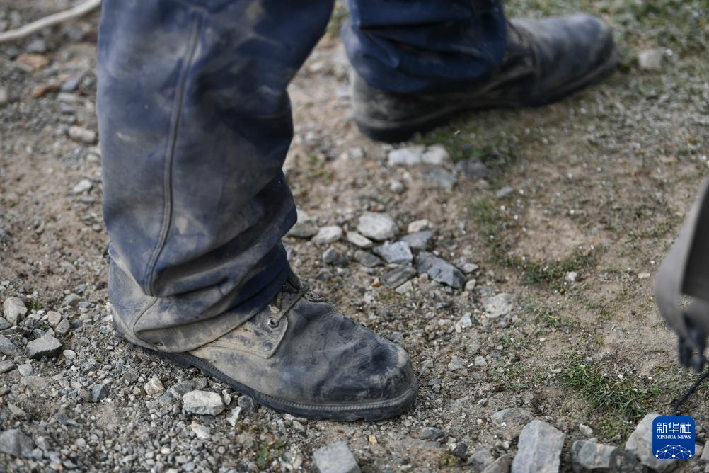 这是7月5日拍摄的塔西巴伊从事高山搬运时所穿的鞋子。新华社记者 胡虎虎 摄
