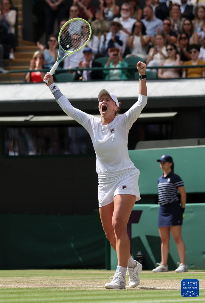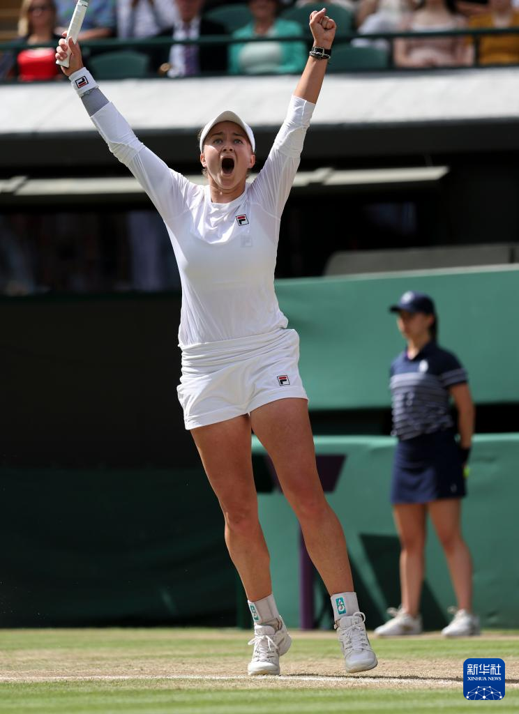 7月10日,克赖奇科娃在获胜后庆祝。新华社记者 韩岩 摄