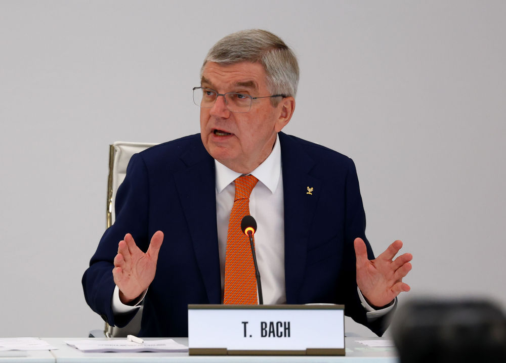 7月20日,国际奥委会主席巴赫在会议上发言。新华社发(Pool图片,凯·普法芬巴赫摄)