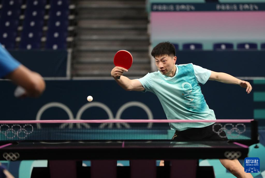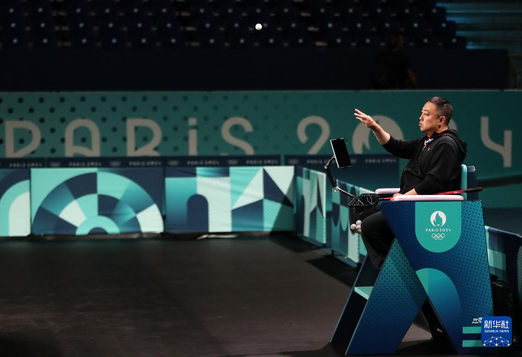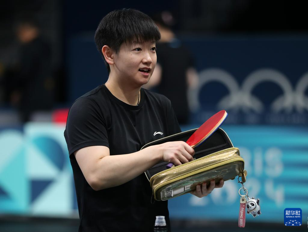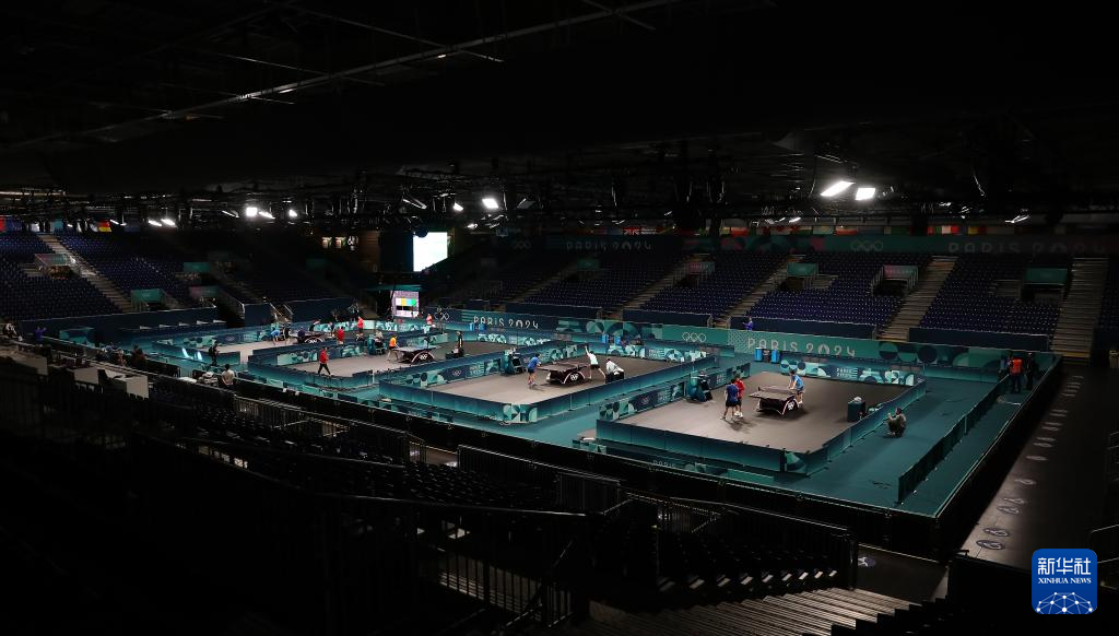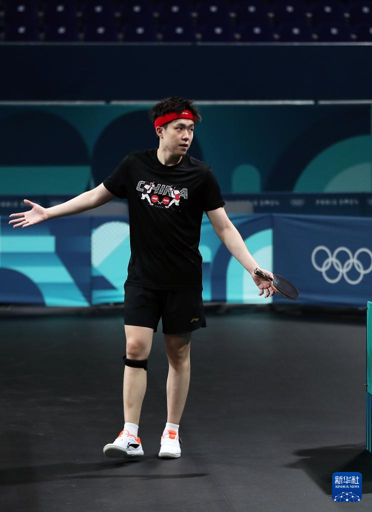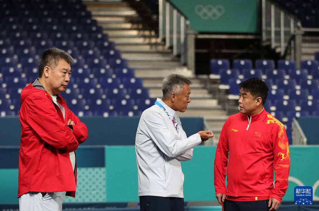 当日,中国国家乒乓球队在南巴黎竞技场进行赛前训练。巴黎奥运会乒乓球项目将于7月27日迎来首个比赛日。