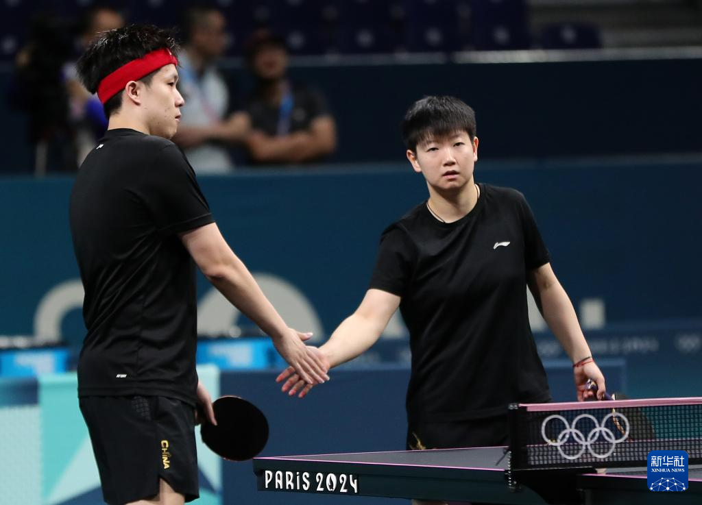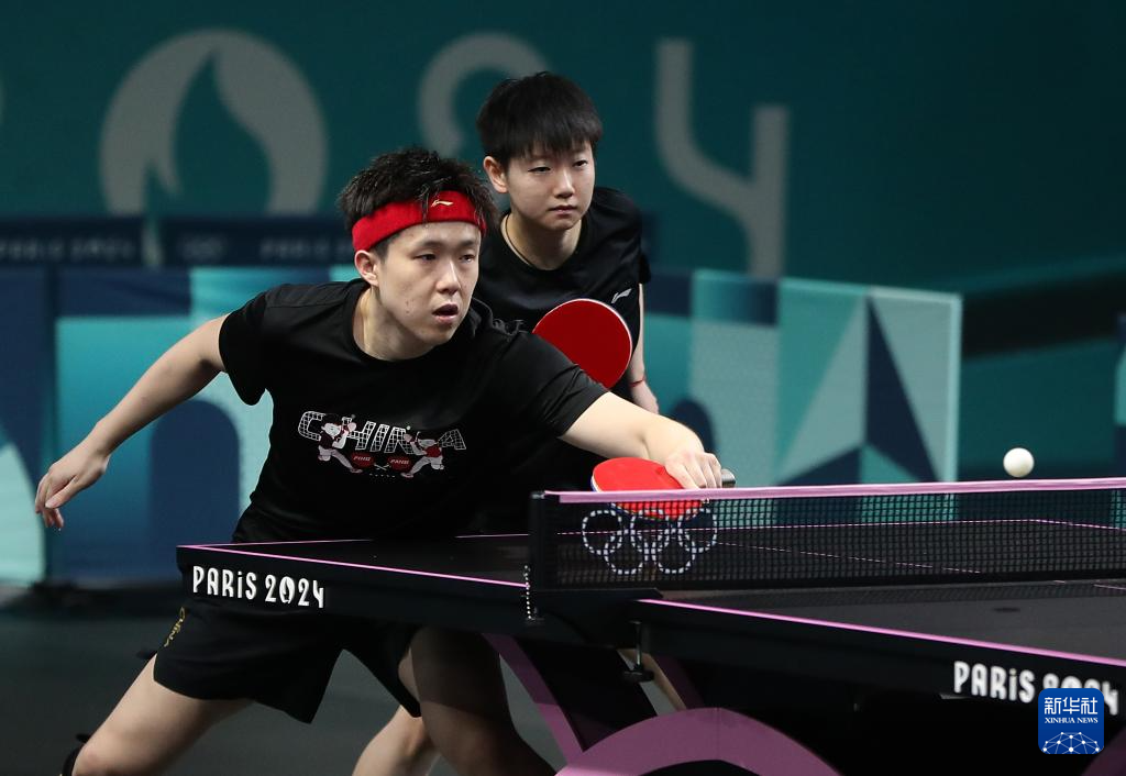 7月22日,王楚钦/孙颖莎(右)在训练中。新华社记者 王东震 摄