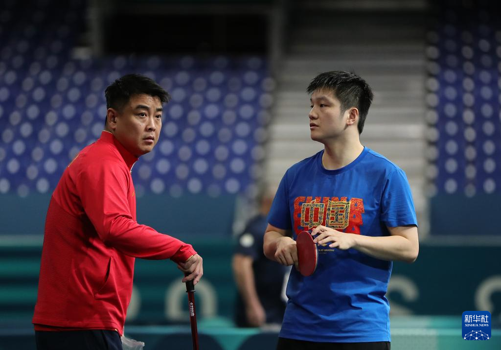 7月22日,樊振东(左)在训练中。新华社记者 王东震 摄