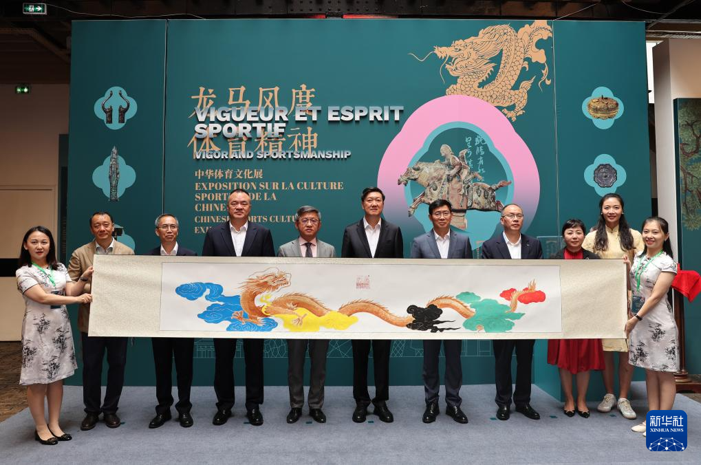 新华社巴黎7月23日电(记者丁文娴、肖亚卓、王安浩维)23日,走进巴黎巴士底设计中心,一条神采飞扬的玫红色巨龙腾跃在半空——在巴黎奥运会开幕倒计时3天之际,“龙马风度 体育精神——中华体育文化展”揭幕。
