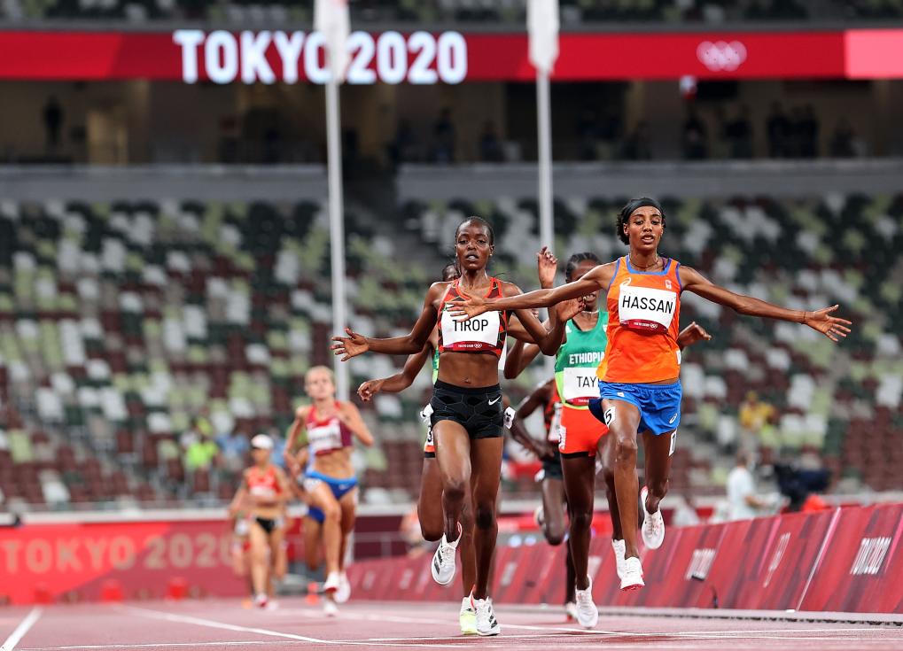 2021年7月30日,荷兰选手西凡·哈桑(前)在东京奥运会女子5000米预赛中。新华社记者 李钢 摄