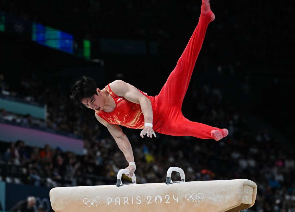 7月27日,中国选手张博恒在鞍马比赛中。新华社记者 刘大伟 摄