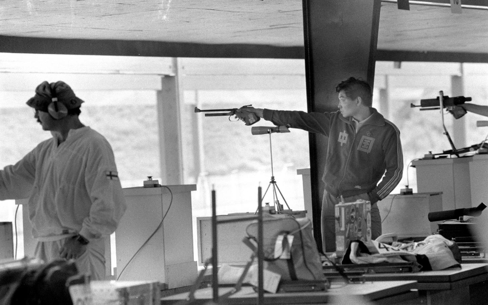 中国射击运动员许海峰射落金牌