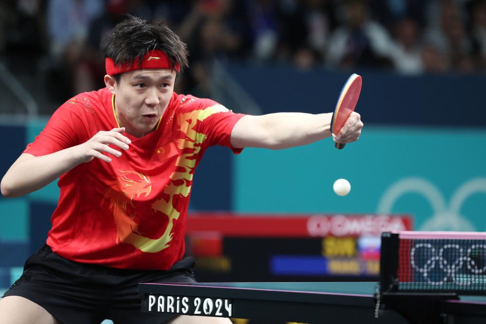 7月28日,王楚钦在比赛中回球。新华社记者 刘续 摄