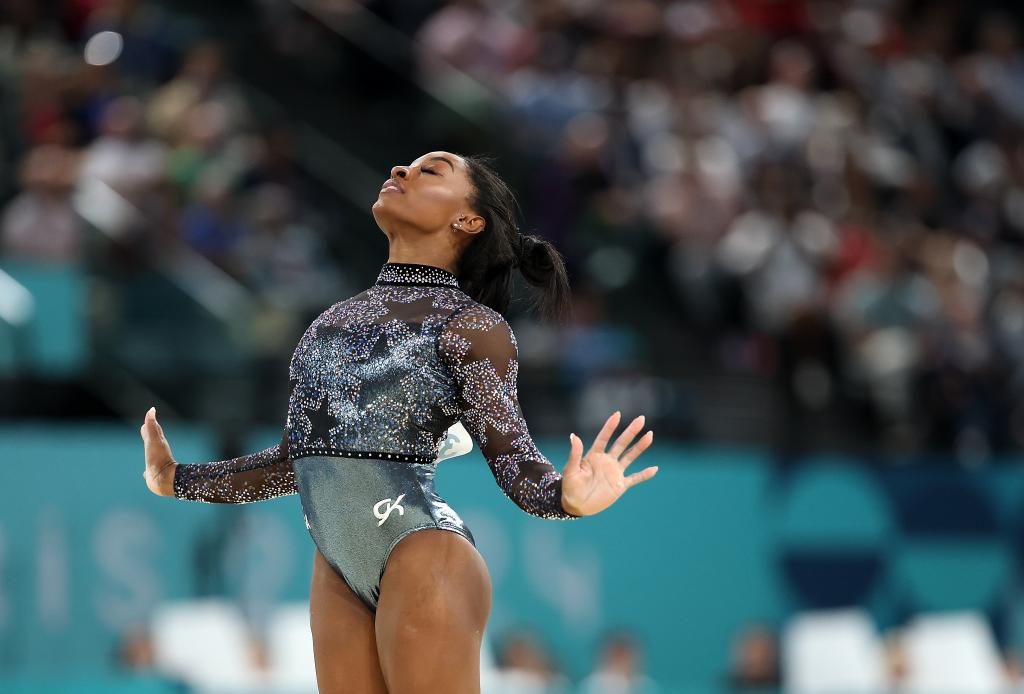 7月28日,美国选手拜尔斯在自由操比赛中。新华社记者 曹灿 摄