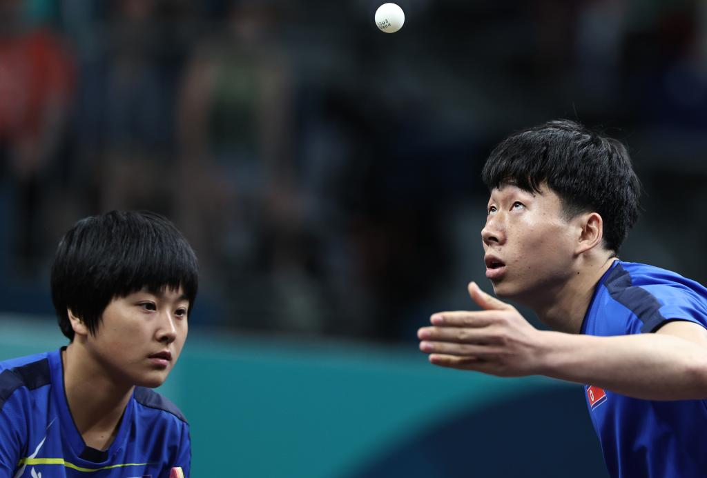 “莎头组合”决赛中的对手是朝鲜组合李正植/金琴英,后者在稍早结束的半决赛中,以4:3艰难战胜中国香港组合黄镇廷/杜凯琹。朝鲜组合堪称本届奥运会乒乓球混双最大的“黑马”,先后淘汰了多对组合闯进决赛,其中包括二号种子日本组合张本智和/早田希娜。