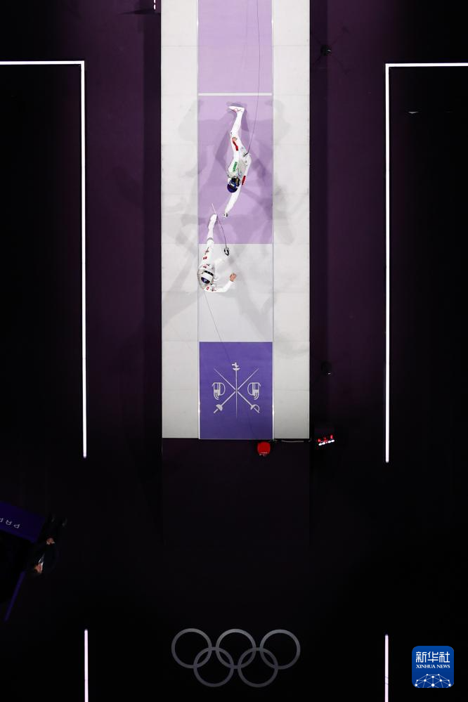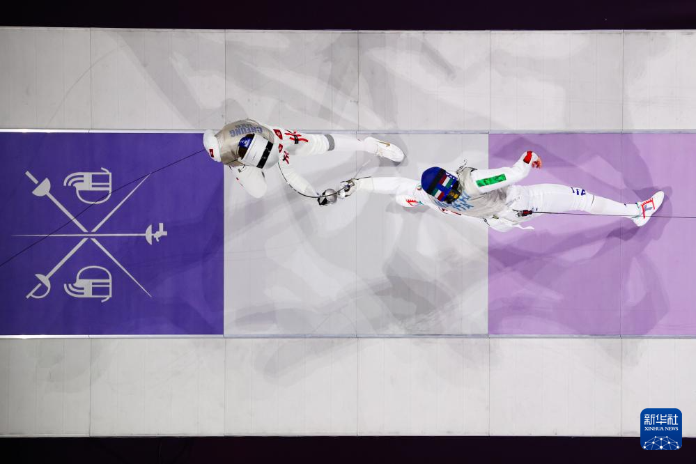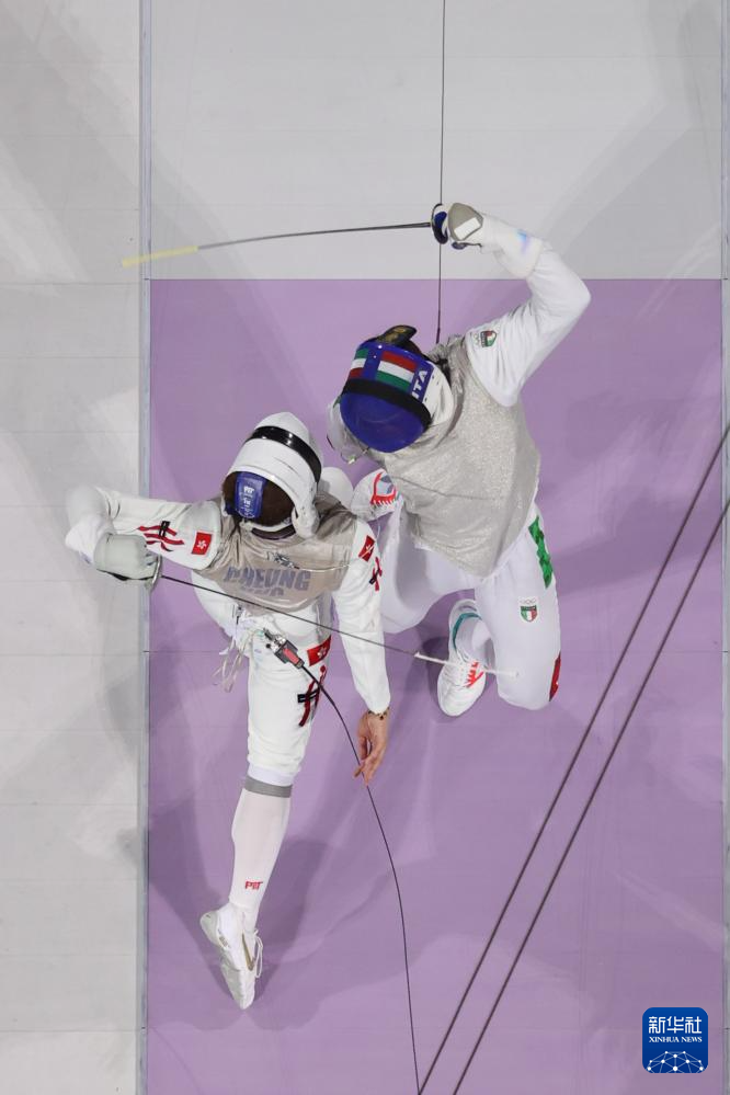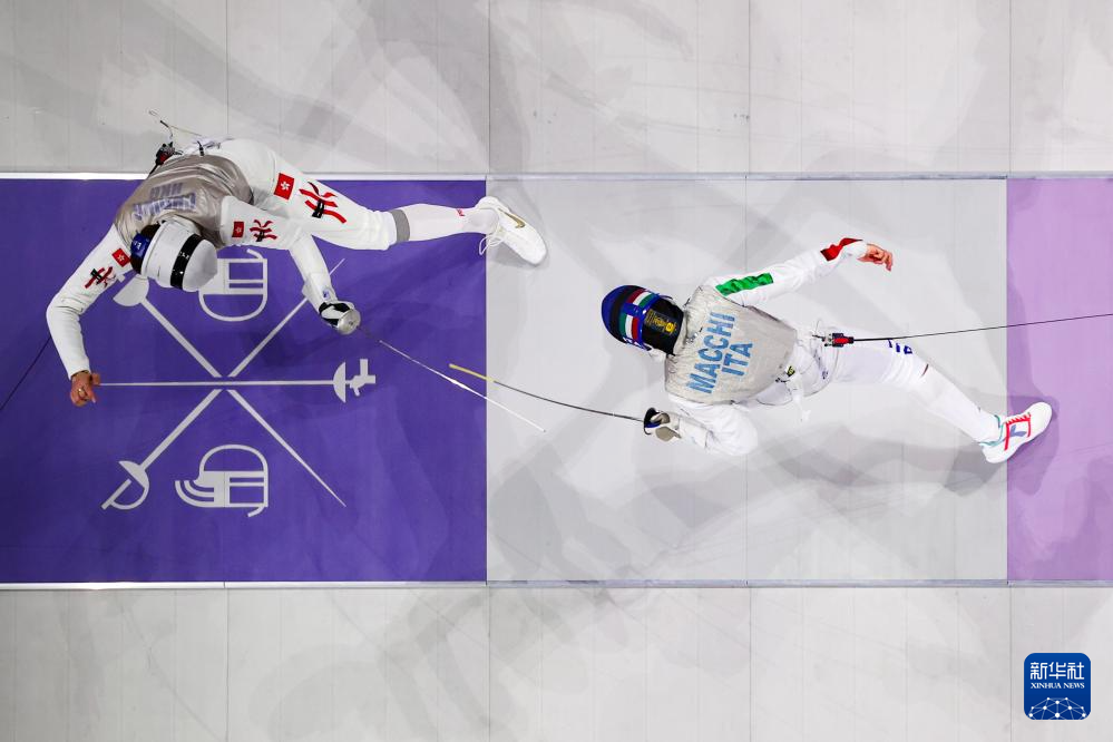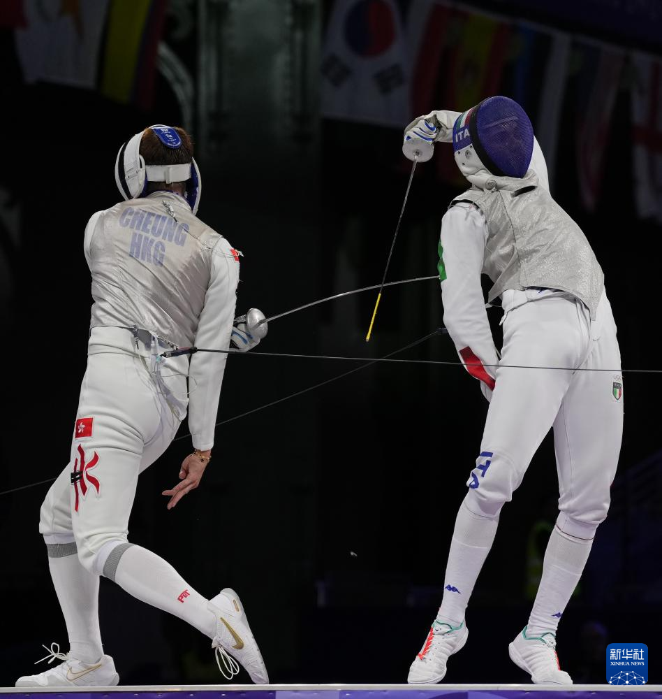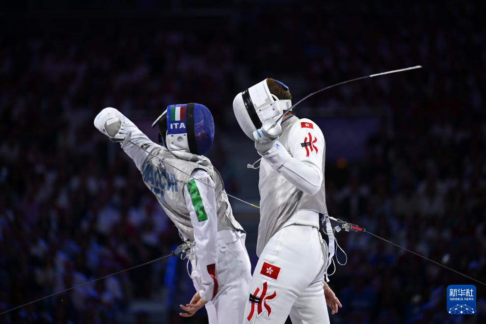 7月29日,中国香港选手张家朗(左)与意大利选手菲利波·马基在比赛中。