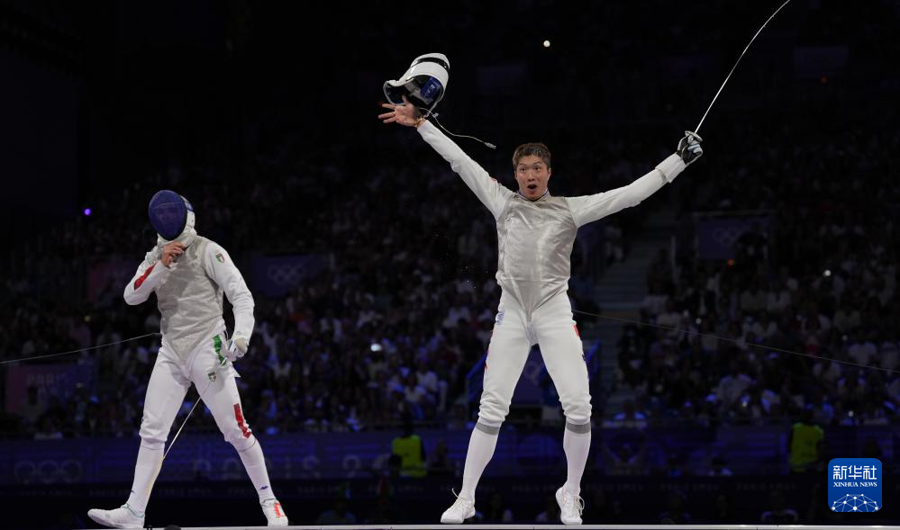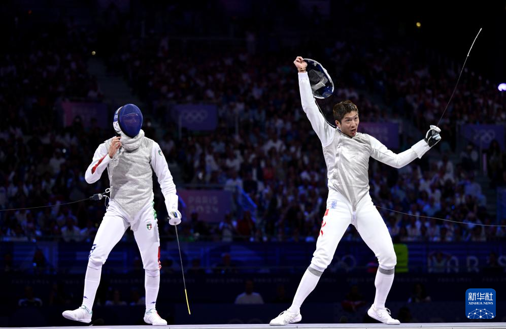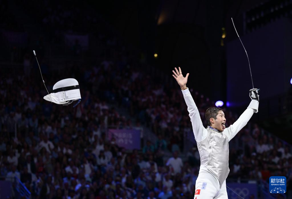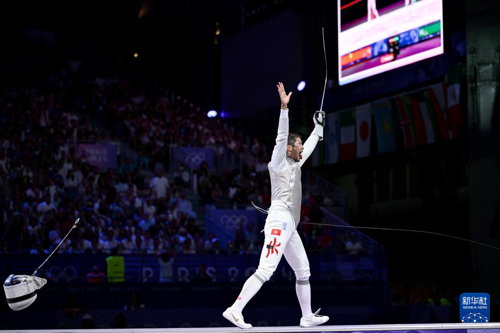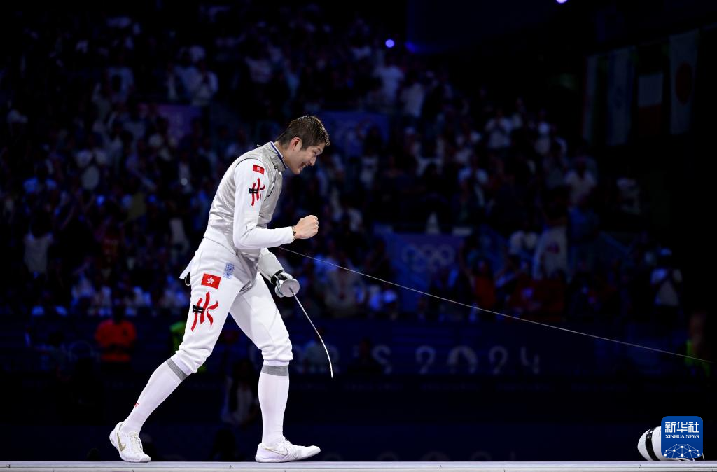 当日,在巴黎奥运会击剑项目男子个人花剑决赛中,中国香港选手张家朗15比14战胜意大利选手菲利波·马基,夺得冠军。
