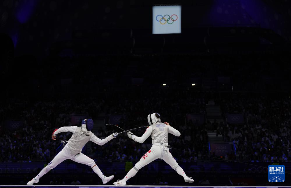 7月29日,张家朗(左)在比赛中。