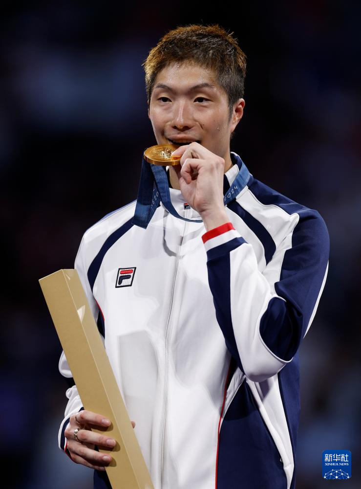 7月29日,张家朗在颁奖仪式上。