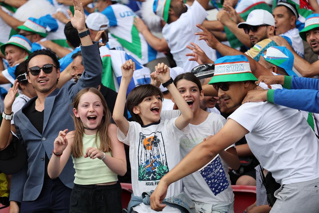 赛场之外,很多人更是被乌兹别克斯坦队球迷“圈粉”。伊马莫夫说,这次奥运会有300多名球迷从乌兹别克斯坦国内飞到法国为球队加油助威,加上法国本地和其他国家过来的,总共也就大约500名球迷。但30日的比赛,就是这几百名球迷,用整齐划一的动作和明快的节奏,带动了整个体育场的气氛。