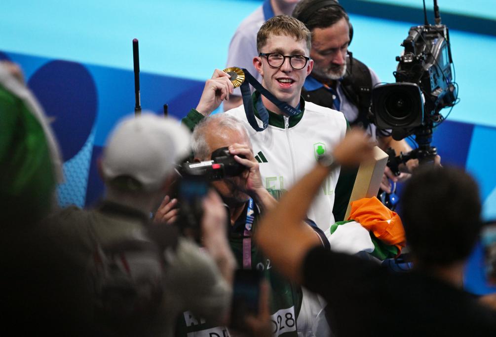 男子800米自由泳决赛,今年多哈世锦赛该项目冠军、爱尔兰名将威芬以7分38秒19打破奥运会纪录摘金。东京奥运会该项冠军、美国名将芬克摘得银牌,意大利名将帕尔特里涅利获得铜牌。