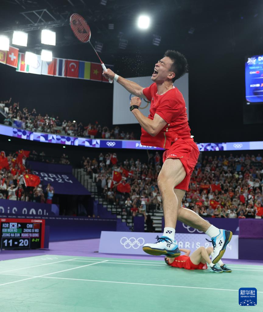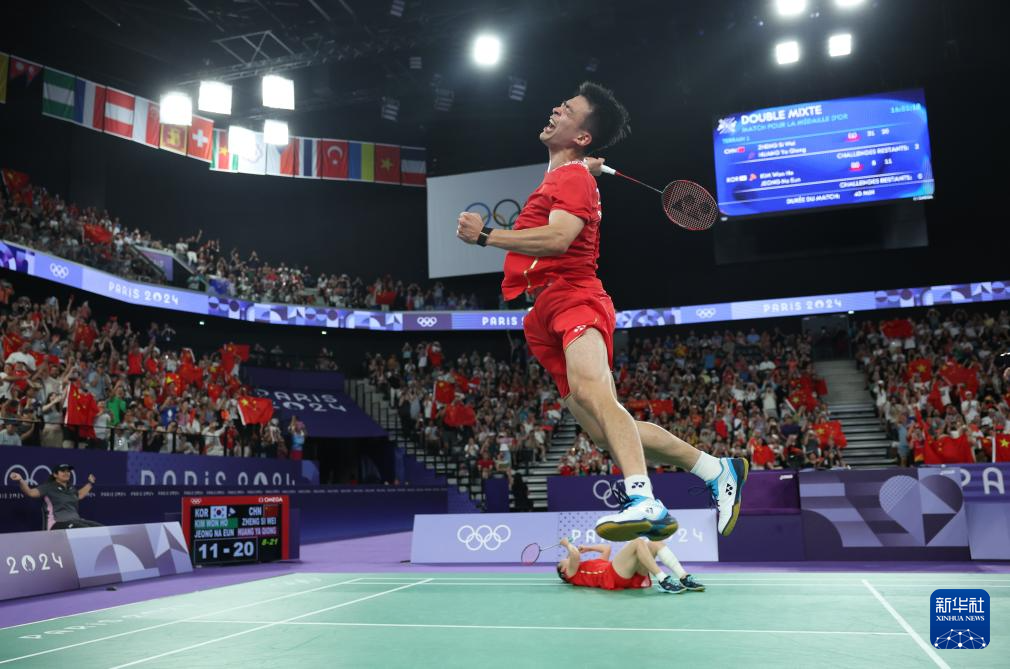 当日,在巴黎奥运会羽毛球混合双打决赛中,中国组合郑思维/黄雅琼2比0战胜韩国组合金元昊/郑娜银,夺得金牌。