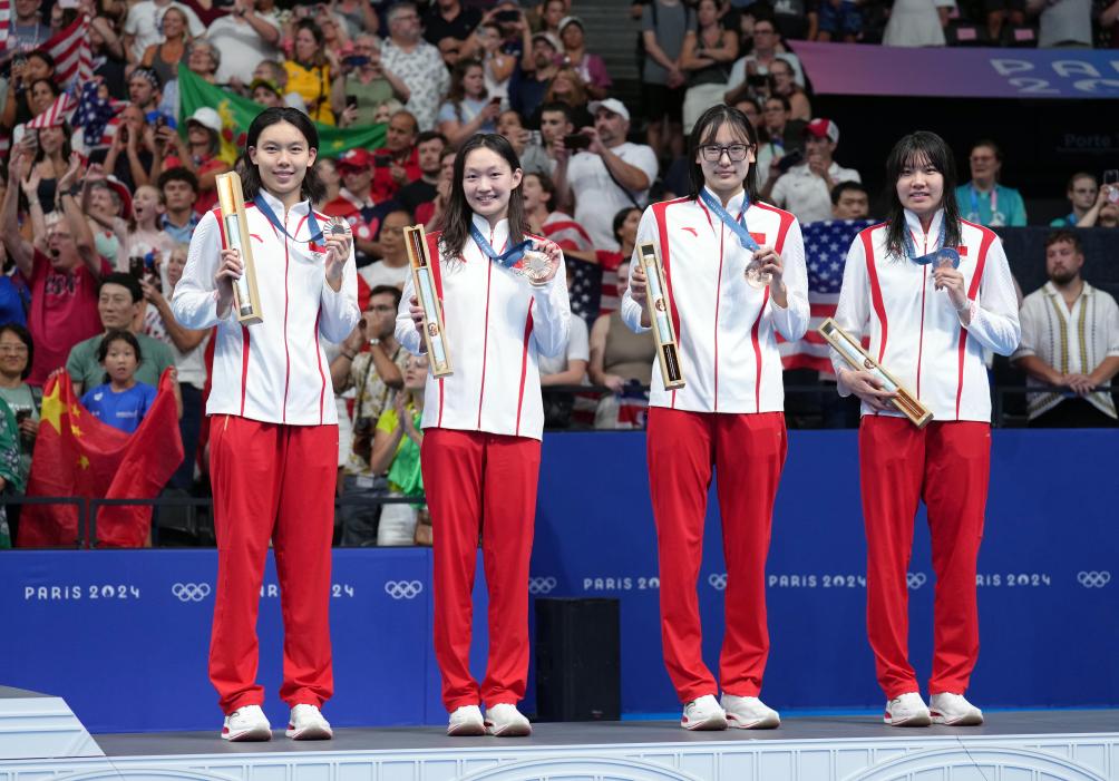 新华社巴黎8月1日电(记者刘旸、周欣)巴黎奥运会游泳赛场1日进行4个项目决赛,女子4X200米自由泳接力卫冕冠军中国队摘得铜牌;张雨霏克服身体不适,夺得女子200米蝶泳铜牌,这也是她个人第七枚奥运奖牌。