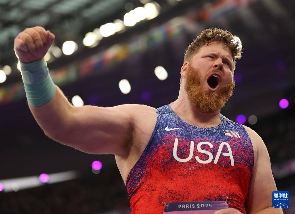 当日,巴黎奥运会田径男子铅球决赛在法兰西体育场举行。最终,美国选手克劳瑟夺得冠军。