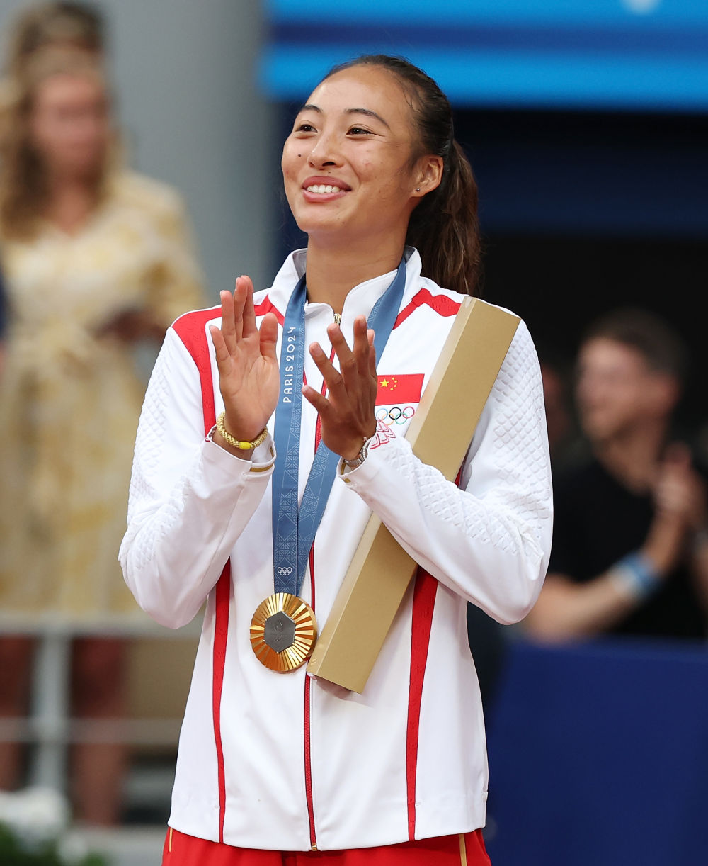 ↑郑钦文在颁奖仪式上。新华社记者 万象 摄