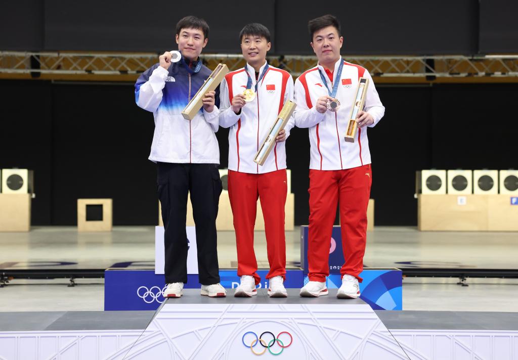这块金牌是中国射击队在男子25米手枪速射项目上获得的历史首枚奥运金牌。在这一项目拿到一金一铜后,中国射击队也以5金2银2铜的成绩超过了北京奥运会的5金2银1铜,创造了奥运参赛历史上的最佳战绩。