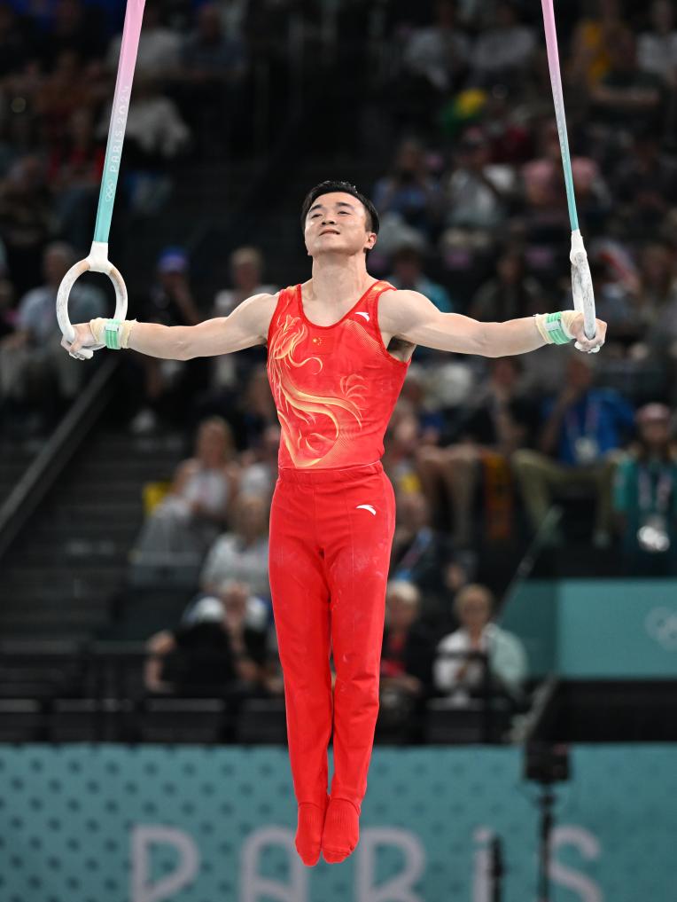 这是中国体操队在巴黎奥运会获得的首金。继东京奥运会收获吊环金牌后,刘洋在巴黎成功卫冕,加上此前斩获的体操男团亚军,他共收获1金1银。