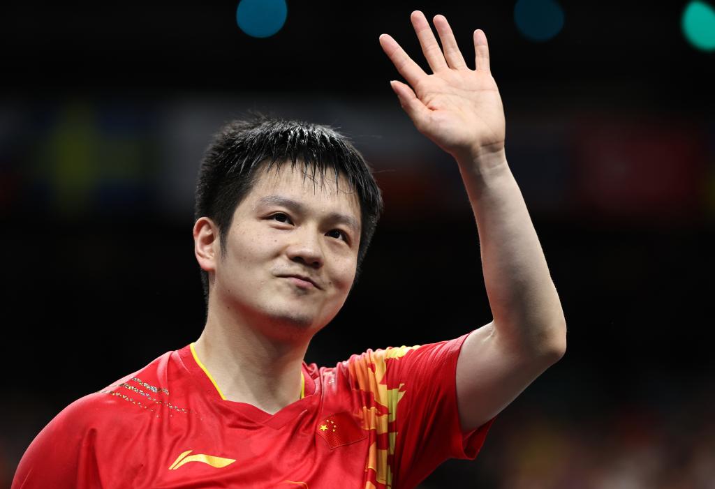 8月4日,樊振东在比赛后向观众挥手致意。新华社记者 王东震 摄
