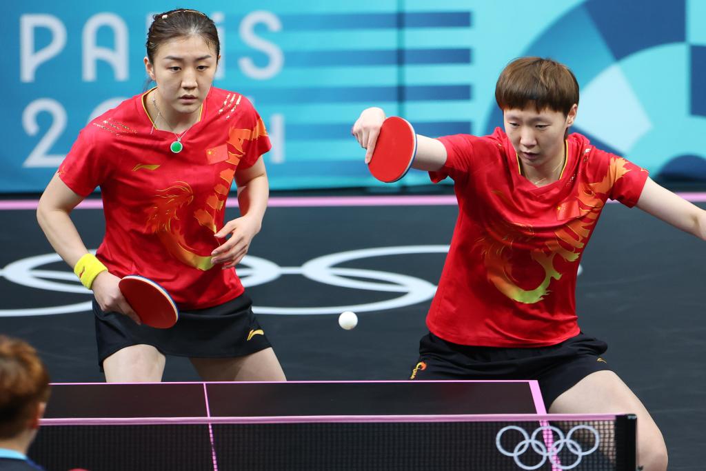 8月7日,中国队组合陈梦(左)/王曼昱在比赛中。新华社记者 刘续 摄