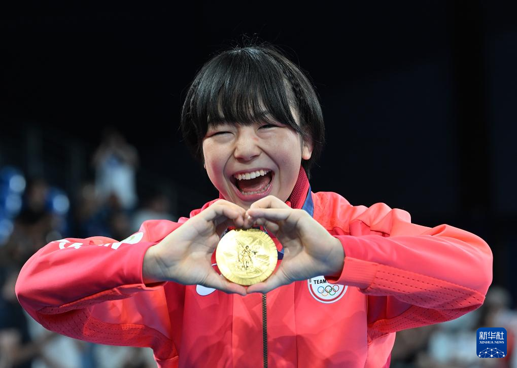 8月8日,冠军日本选手藤波朱理在颁奖仪式上。