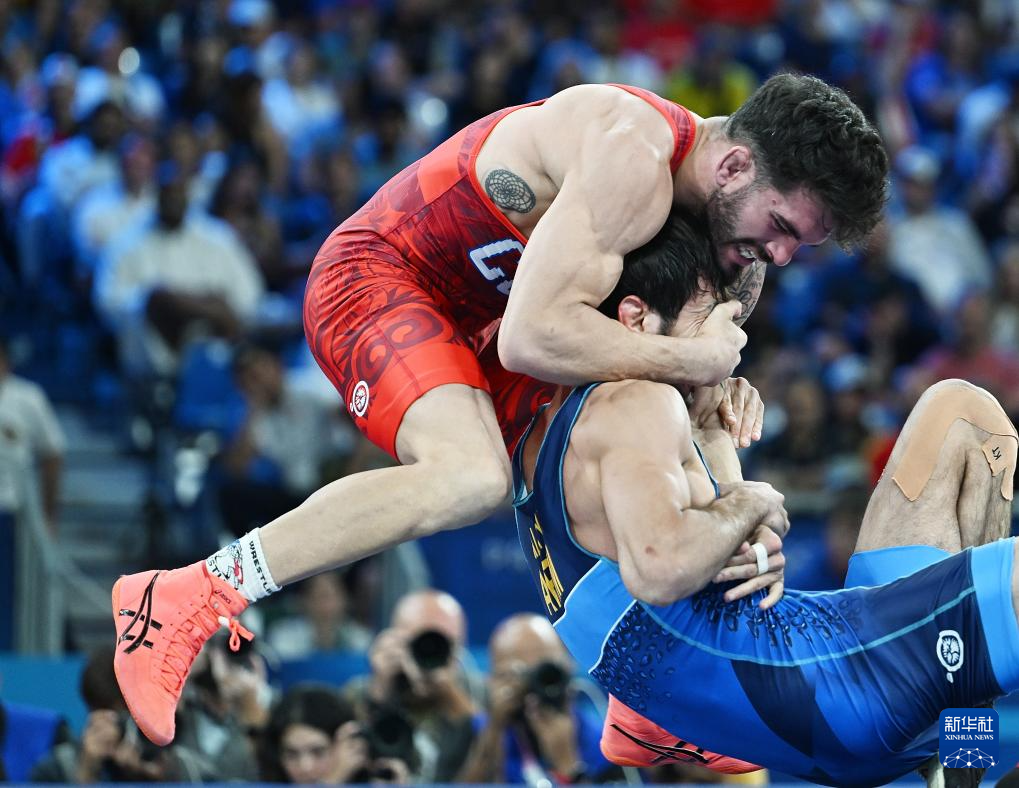 当日,巴黎奥运会摔跤男子自由式86公斤级半决赛在巴黎战神广场举行。