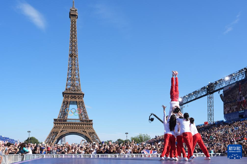 当日,观众来到位于法国巴黎特罗卡德罗广场的冠军公园,与奥运奖牌获得者分享荣耀。