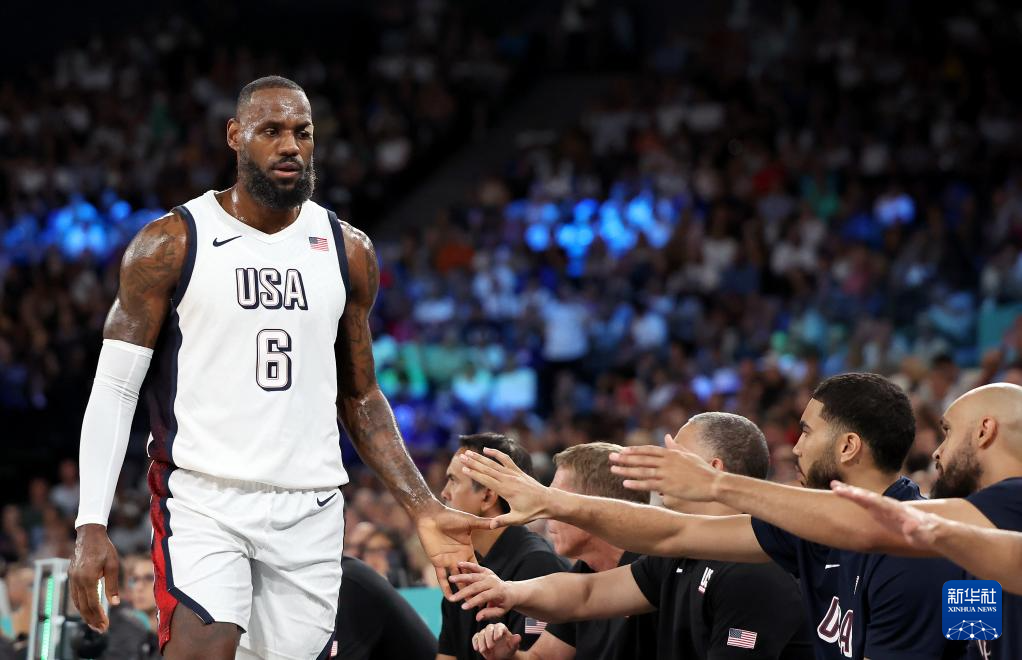 8月8日,美国队球员詹姆斯在比赛中出场。