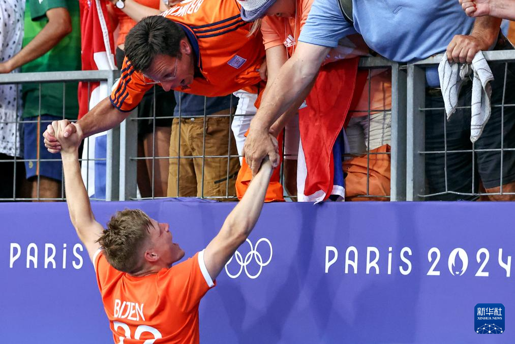 8月8日,荷兰队球员庆祝获胜。新华社记者 任鹏飞 摄