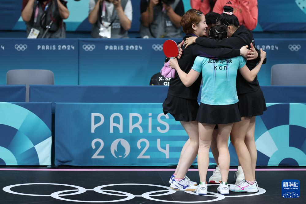 当日,在巴黎奥运会乒乓球女团铜牌赛中,韩国队3比0战胜德国队,获得铜牌。