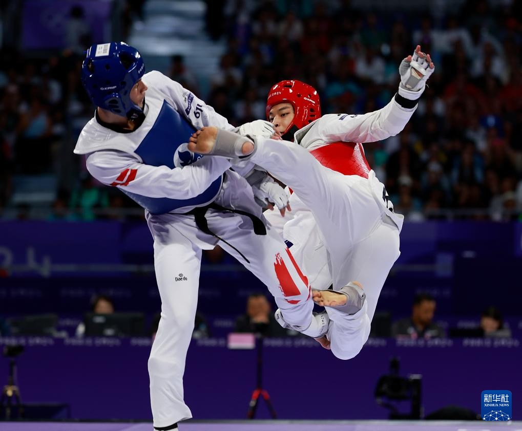 当日,巴黎奥运会跆拳道男子80公斤级16强赛在巴黎大皇宫举行。