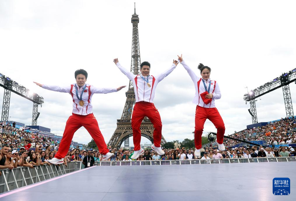 当日,观众来到位于法国巴黎特罗卡德罗广场的冠军公园,与奥运奖牌获得者分享荣耀。