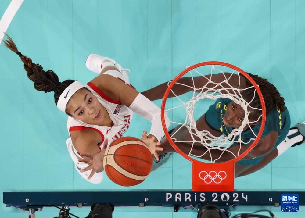 当日,在巴黎贝尔西体育馆进行的巴黎奥运会女子篮球半决赛中,美国队85比64战胜澳大利亚队,晋级决赛。