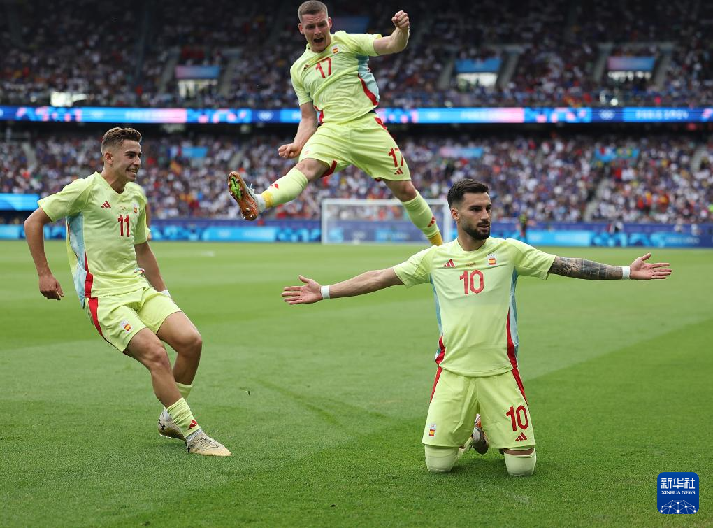 当日,在法国巴黎王子公园体育场进行的巴黎奥运会男子足球决赛中,西班牙队对阵法国队。